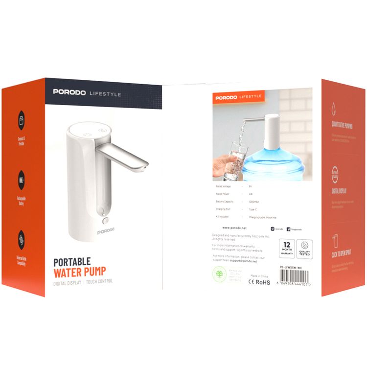 مضخة ماء محمولة من بورودو لايف ستايل بسعة بطارية 1200 مللي أمبير، قدرة كهربائية 4 وات، بطارية قابلة لإعادة الشحن، عرض رقمي، مدمجة ومحمولة.