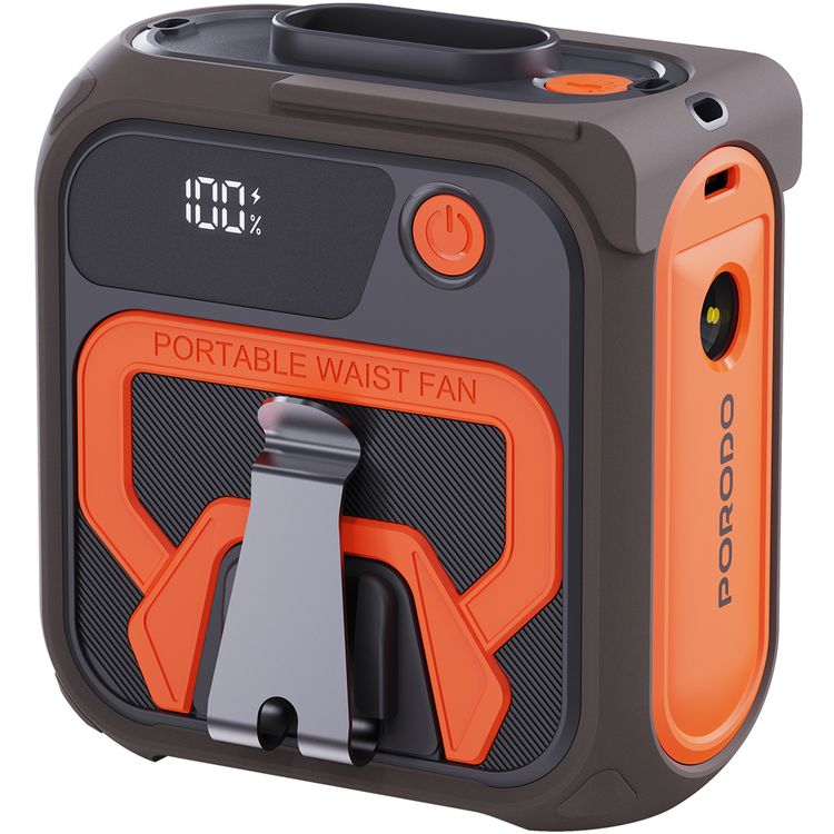 مروحة تبريد خصر متعددة الوظائف من بورودو لايف ستايل مع بنك طاقة 10000 مللي أمبير/ساعة، ضوء فلاش، رياح قوية، شاشة رقمية، 5 مستويات سرعة، وقت عمل 40 ساعة، وقت شحن 4 ساعات، حزام للرقبة - برتقالي/بني