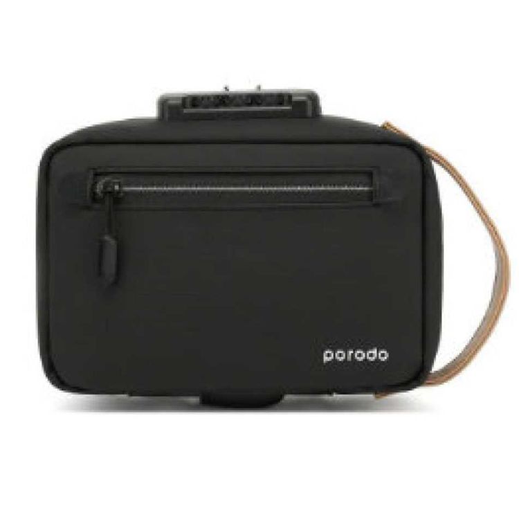 حقيبة تخزين مضادة للسرقة من بورودو لايف ستايل مصنوعة من نسيج نايلون وجلد بحجم 8.2 بوصة مع حامل لمحرك فلاش يو إس بي، مقاومة للرذاذ بتصنيف IPX3 وتوافق مع شحن USB-A - باللون الأسود.