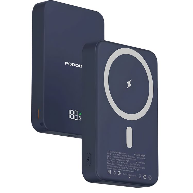 بورودو ماج سيف باور بانك 10000mAh مع منفذ إدخال وإخراج Type-C، شحن لاسلكي 15W وشحن PD بقدرة 20W، مؤشر بطارية LED، تصميم مدمج ومحمول - أزرق