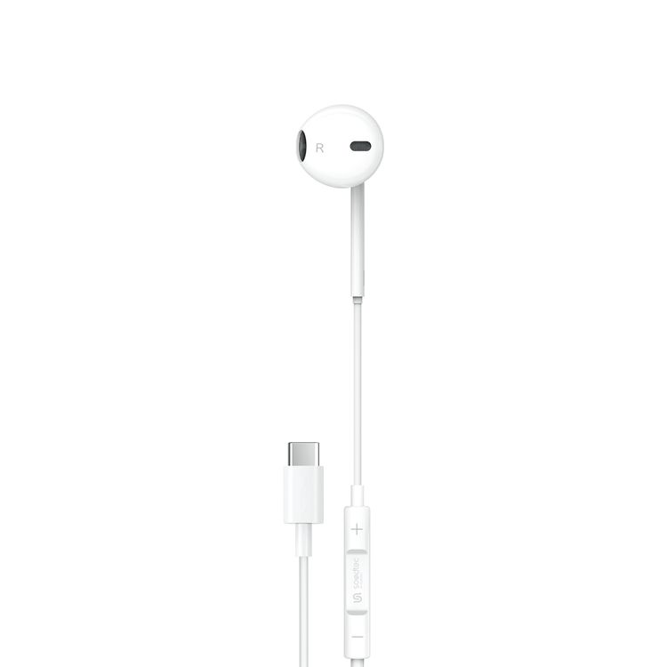 سماعة أذن بورودو ساوندتيك مونو مع موصل Type-C، و3 أزرار تحكم، ميكروفون عالي الوضوح، طول الكابل 120 سم - أبيض