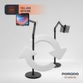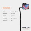 حامل هاتف ولوحي من بورودو للأرضية مع قابلية ضبط الارتفاع حتى 165 سم، متوافق مع الأجهزة من 5.5" إلى 12.9"، دوران كامل محور 360°، توافق واسع - أسود