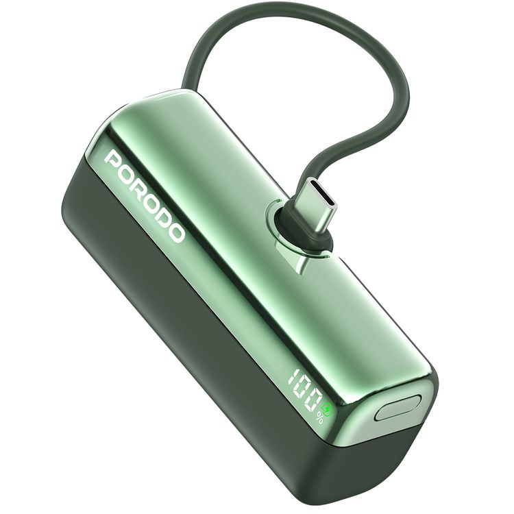 بورودو بوكيت فولت باور بانك بسعة 5000 مللي أمبير في الساعة مع موصل مدمج من نوع C، بقدرة توصيل طاقة 22.5 وات، ودعم الشحن السريع، وتصميم مدمج، وإخراج إجمالي 15 وات - اللون الأخضر.