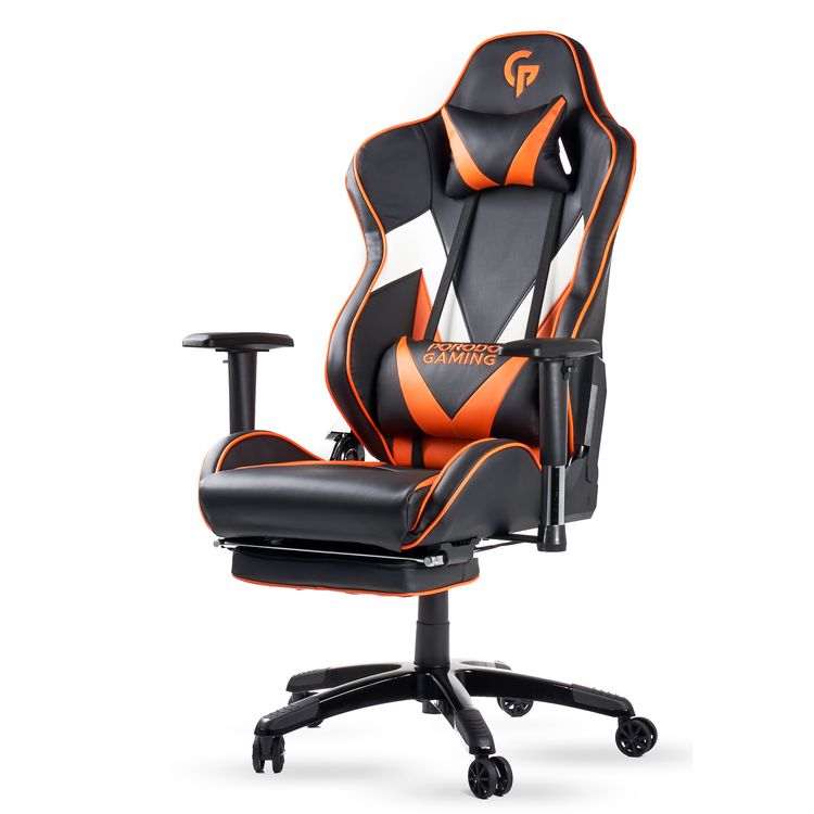 Porodo PU Leather Gaming Chair w/ Footrest & Adjustable Armrest & Backrest w/ Soft Padding, Extra Comfort Molded Seats, Class 3 Gas Lift Suitable for Office & Home - Black/Orange