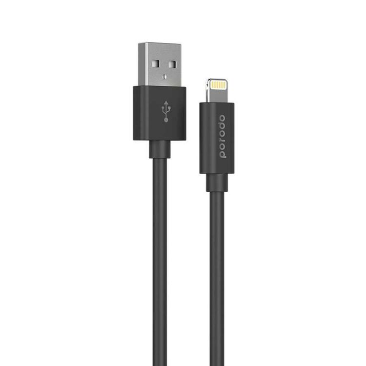 كابل بورودو PVC USB-A إلى Lightning بتيار 2.4A، طول الكابل 1.2 متر، مادة مقاومة للحريق، شحن سريع ومزامنة بيانات، حماية من الحرارة الزائدة والتيار الزائد - أسود