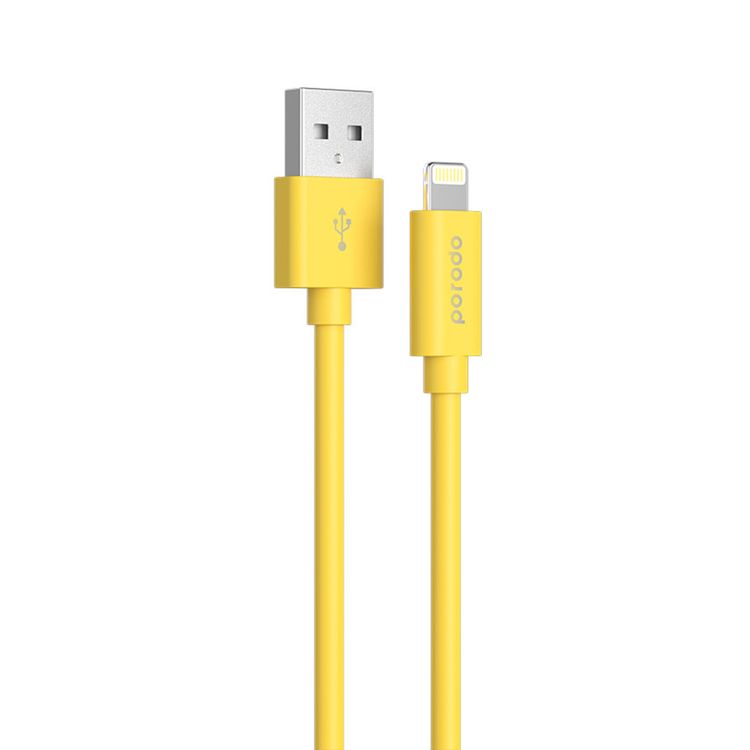 Porodo PVC USB-A إلى Lightning كابل مع تيار 2.4A، طول الكابل 1.2 متر، مادة مقاومة للحريق، شحن سريع ومزامنة بيانات، حماية من السخونة الزائدة والتيار الزائد - أصفر