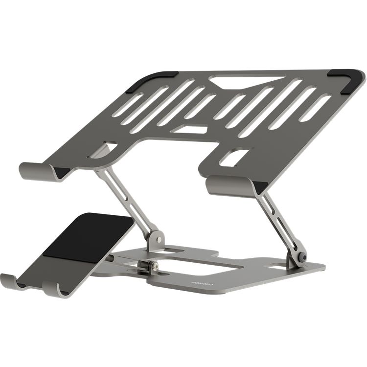 حامل ذكي قابل للطي متعدد الأجهزة من بورودو مع حامل هاتف، مصنوع من الفولاذ الكربوني والمطاط السيليكوني، متوافق مع الأجهزة مقاس 10-17 بوصة، ارتفاع وزاوية قابلة للتعديل، تصميم قابل للطي، غير قابل للانزلاق وآمن - فضي