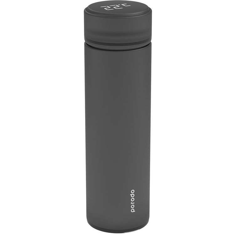 زجاجة ماء ذكية من بورودو مع مؤشر درجة الحرارة، سعة 500 مل، مستشعر درجة الحرارة، شاشة لمس حساسة LED - أسود