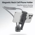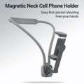 حامل رقبة للهواتف الذكية من بورودو مع قفل مغناطيسي، تسجيل بدون استخدام اليدين، مقاس رقبة قابل للتعديل 625 مم، مقاس كليب الهاتف 65-110 مم، مصنوع من الألمنيوم والسليكون والفولاذ المقاوم للصدأ، تثبيت آمن - أسود