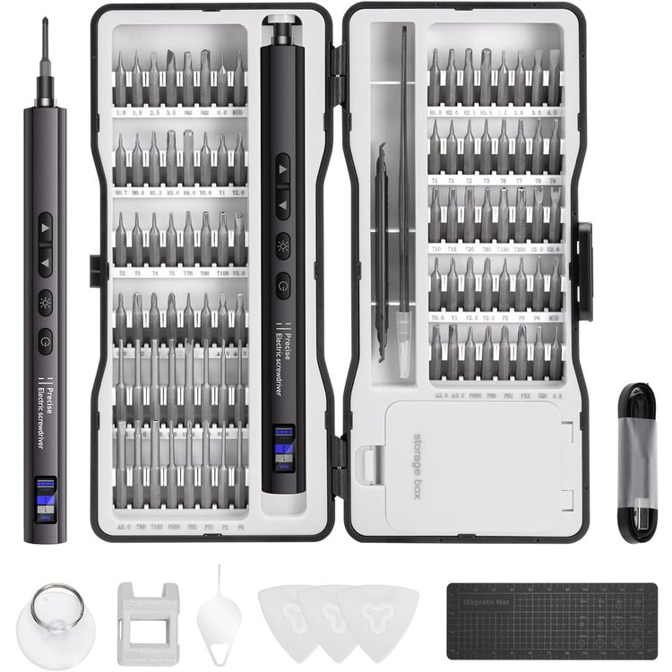 عدة مفكات براغي كهربائية دقيقة من Porodo TechFix 97 في 1 مع ضوء LED، منفذ شحن Type-C، عمر بطارية طويل، تصميم مدمج، سعة بطارية 320 مللي أمبير، وقت شحن 90 دقيقة - أسود