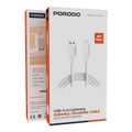 كابل شحن Porodo USB-A إلى Lightning بطول 3 أمتار، مصنوع من مادة PVC، يدعم الشحن السريع ومزامنة البيانات، تتحمل أكثر من 15000 انحناءة، سرعة نقل بيانات 480 ميجابت في الثانية، تصميم يمنع التشابك - أبيض.