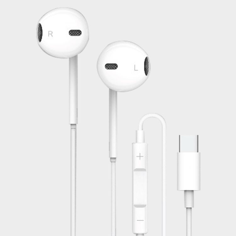 سماعة أذن Powero + Talkie Stereo بدون استخدام الأيدي مع موصل TYPE-C - أبيض