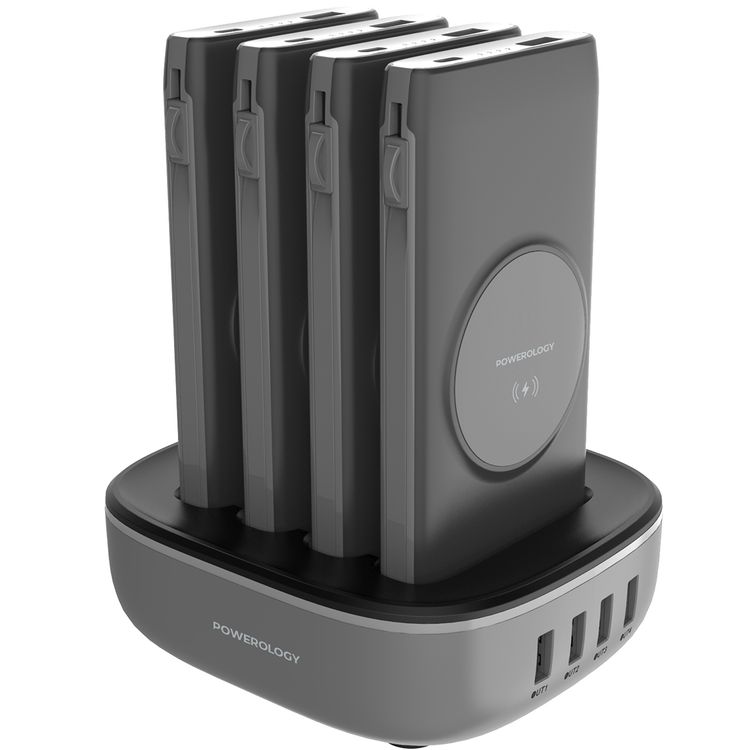 تأتي سلسلة البطاريات المحمولة باورولوجي مع أنواع مختلفة ، بما في ذلك 8 باور بانك أو 4 باور بانك مع قاعدة شحن. 4 في 1 باور بانك ستيشن متضمن أربعة باور بانك ، كل منها بسعة 10000 مللي أمبير والإجمالي 40000 مللي أمبير. تحتوي محطة الباور بانك 8 في 1 على 8 حزم طاقة لكل منها سعة بطارية 10000 مللي أمبير في الساعة ، بإجمالي 80000 من السعة الضخمة التي يمكن استخدامها في الرحلات الطويلة التي تستغرق عدة أيام. تتوفر محطة الباور بانك بثلاثة ألوان ، أسود ، أزرق وأبيض.