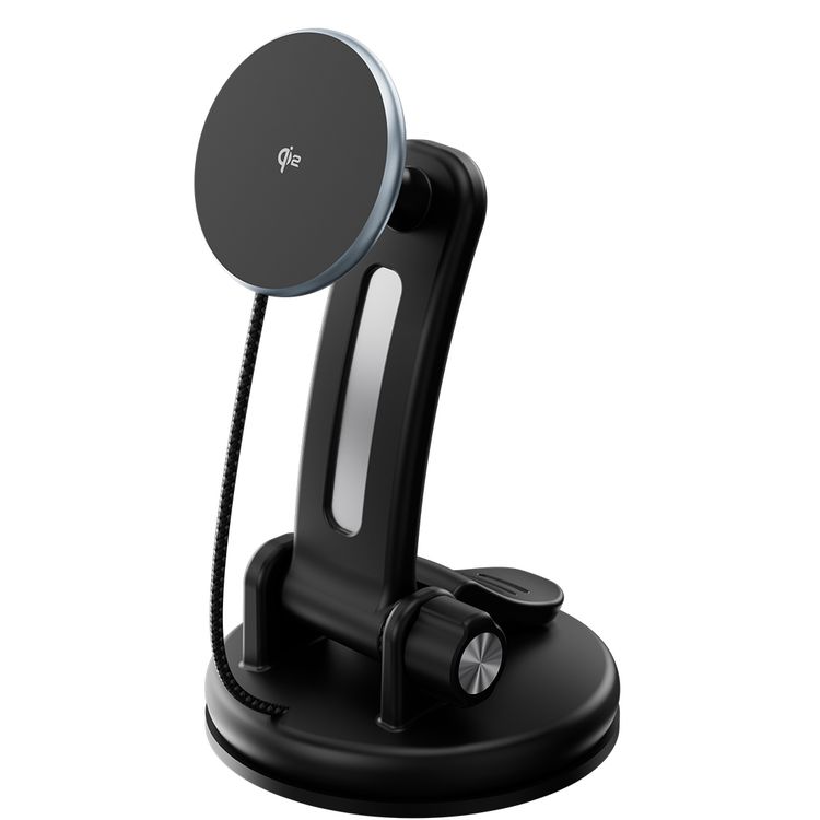 شاحن السيارة المغناطيسي باورولوجي إير ويف مع حامل للوحة القيادة وحامل لفتحة التهوية، بطاقة شحن للهاتف تبلغ 15 واط، وطاقة شحن للسماعات تبلغ 5 واط، شحن لاسلكي سريع Qi2، طول الكابل 1.2 متر، زاوية مشاهدة 360 درجة،