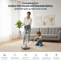 مكنسة كهربائية لاسلكية من باورولوجي مع شاشة عالية الدقة وبطارية قابلة للفصل، 3 مستويات سرعة، محرك بقوة 350 وات، بطارية ليثيوم أيون، 2000 مللي أمبير في الساعة - رمادي غامق