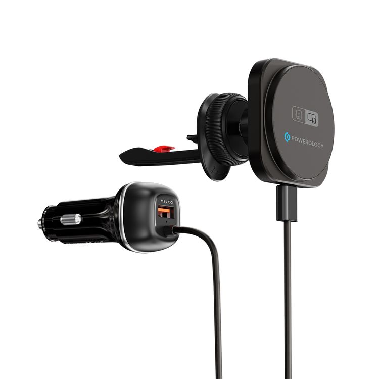 شاحن سيارة باورولوجي نيكزارا الذكي مع دعم CarPlay اللاسلكي، إخراج لاسلكي بقوة 15 واط، توصيل طاقة 30 واط، إجمالي إخراج 51 واط، حماية من الحمل الزائد - أسود