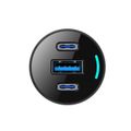 شاحن سيارة بثلاثة منافذ من باورولوجي بتقنية الشحن السريع بقدرة 65 واط، QC18W، شاحن لابتوب، تصميم مسجل ببراءة اختراع، إجمالي قدرة 85 واط، مع حماية مدمجة - أسود