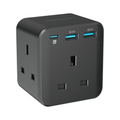 مقبس جداري باورولوجي بثلاثة مخارج مع شحن سريع USB - أسود