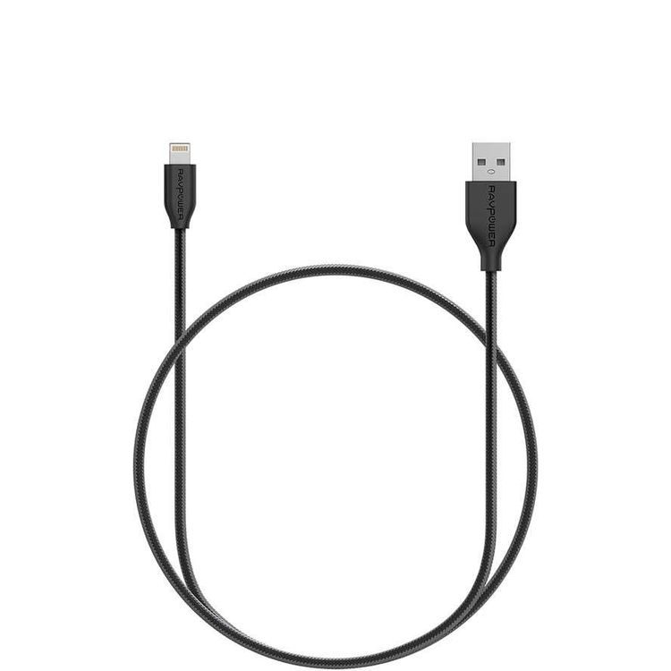 RAVPower Kevlar Braided Cable 3ft/0.9m 2.4A Compatible for iPhone Lightning Devices - Fast Charging Long-lasting Durable Connector - Charge & Sync Data Transmission Cord - Black
