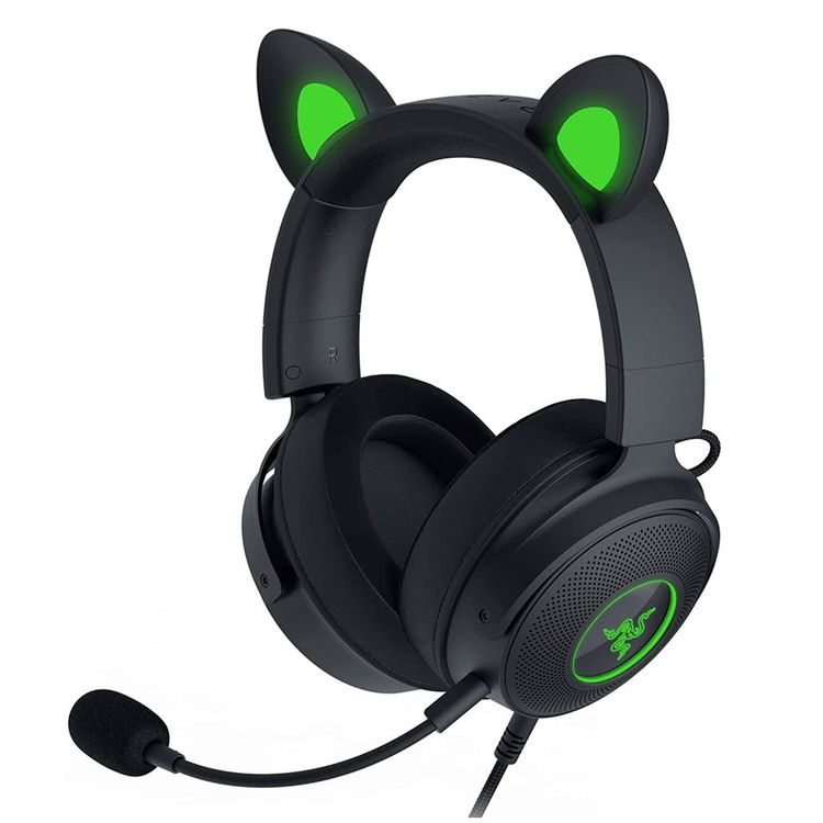 سماعات رأس Razer Kraken Kitty V2 Pro للألعاب مع خاصية إلغاء الضوضاء السلبية، وصلة USB-A، كابل بطول 2 متر، وسادات أذن مريحة ودافئة، آذان قطة ودب وأرنب قابلة للتبديل، تفعيل وضع التنكر، إضاءة تفاعلية - أسود