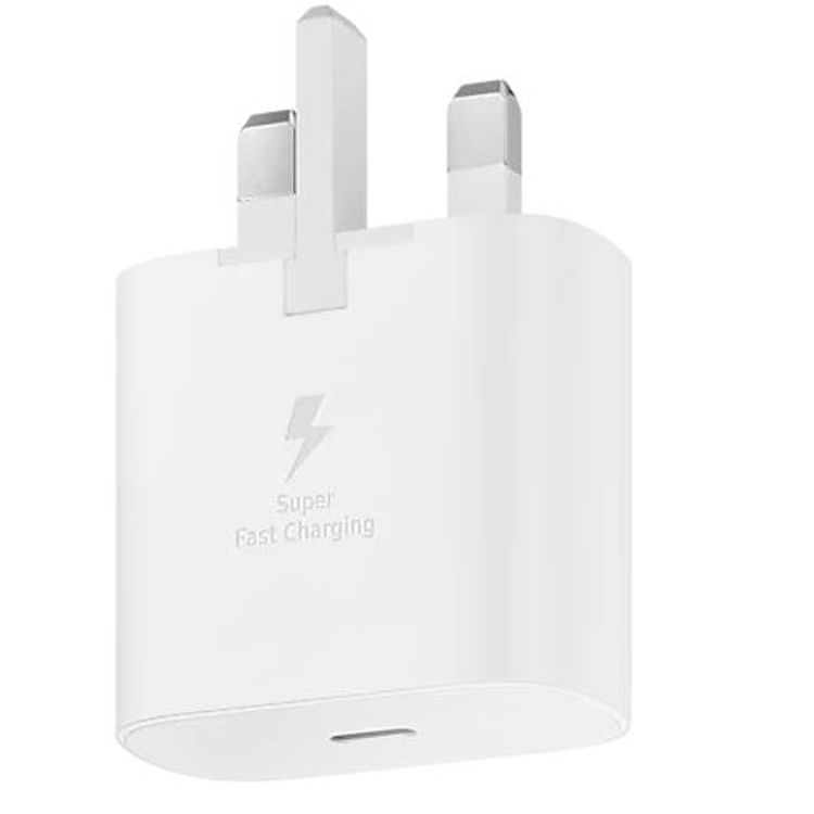 محول USB-C PD 25 وات من سامسونج، 3 دبابيس، يدعم الشحن السريع للغاية بقوة 25 وات - أبيض