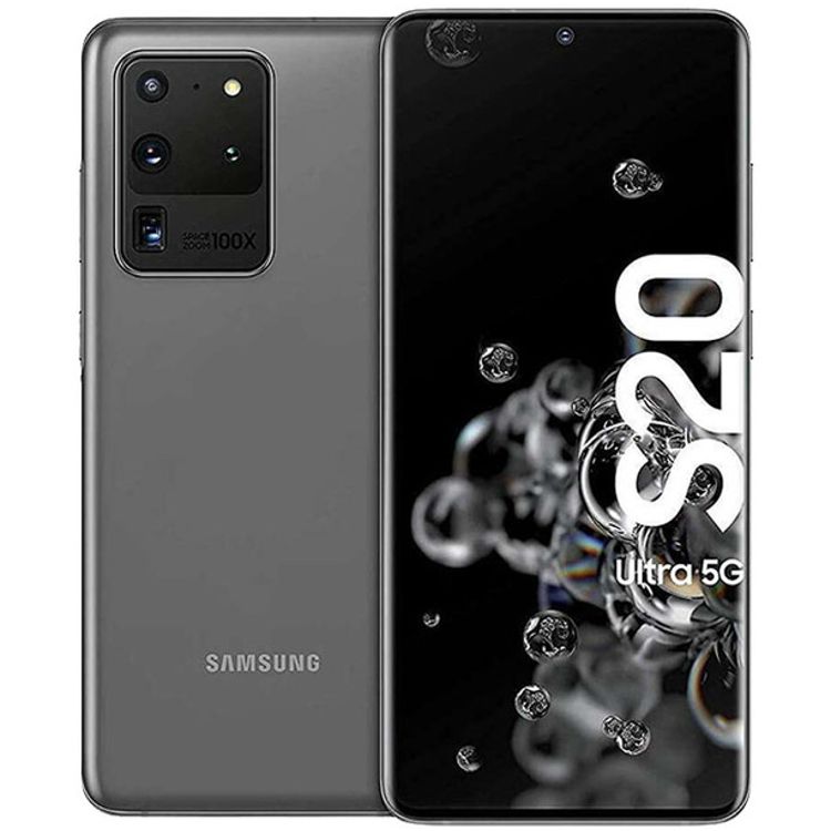 هاتف سامسونج جالاكسي S20 الترا الذكي ثنائي الشريحة 12 جيجا رام ، كاميرا رباعية فائقة الدقة ، معالج اكسينوس وكوالكوم سناب دراغون ، بطارية 5000 مللي أمبير تدوم طوال اليوم ، مستشعر بصمة الإصبع ، سامسونج بي ، IP68 مقاوم للماء / (5G - 128 جيجا بايت) - رمادي