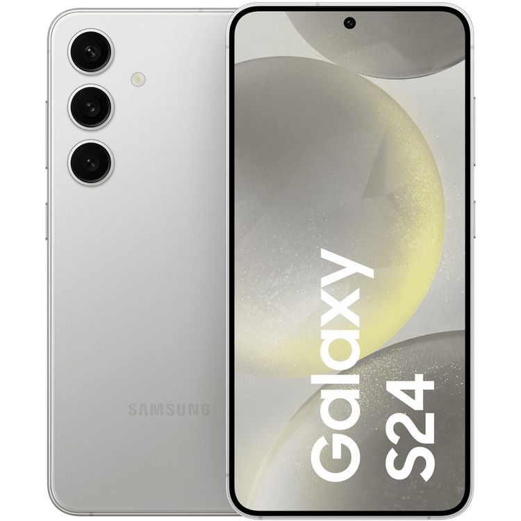 هاتف سامسونج جالاكسي إس 24 الذكي بتقنية شبكة الجيل الخامس، شاشة ديناميكية أموليد 2x مقاس 6.2 بوصة، ذاكرة وصول عشوائي (RAM) سعة 8 جيجابايت، سعة تخزين 128 جيجابايت، دقة كاميرا 50 ميجابكسل، معالج عشاري النواة، شريحتي اتصال eSIM، بطارية تدوم طويلاً - رمادي رخامي
