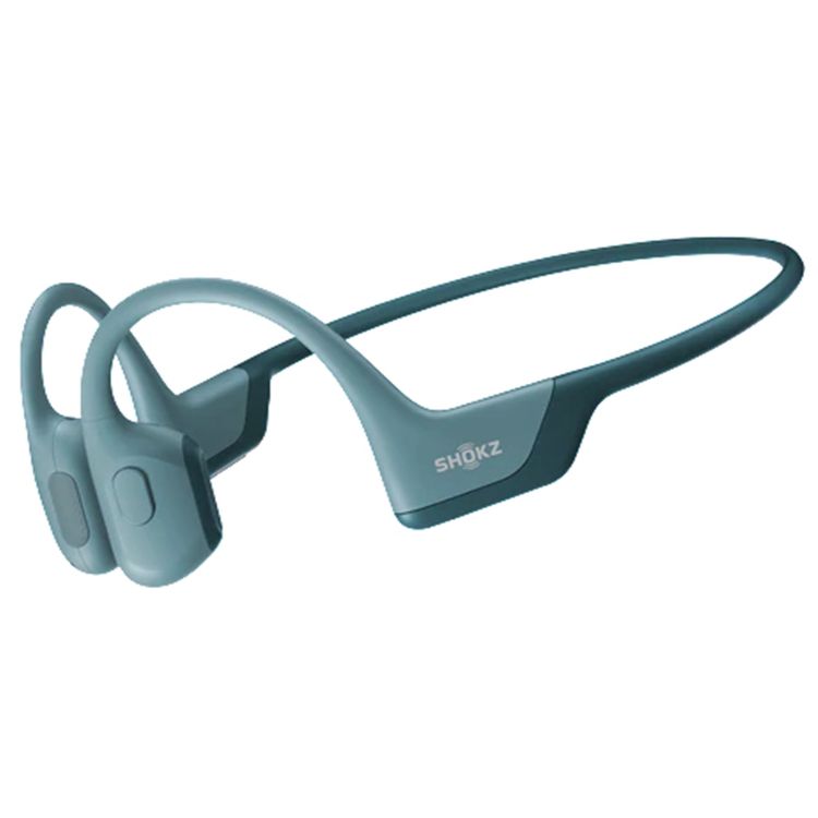 سماعات أذن مفتوحة من شوكس أوبن رن برو سبورت، مع عمر بطارية يصل إلى 10 ساعات، وكابل شحن مغناطيسي، ووقت شحن لمدة ساعة، وبلوتوث 5.1 بمدى يصل إلى 10 أمتار، ومقاومة للعرق والماء بتصنيف IP55، وميكروفونات مزدوجة لإلغاء الضوضاء، ومادة التيتانيوم، وملاءمة آمنة - أزرق