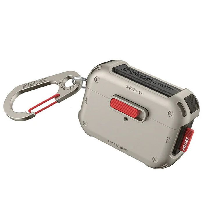 حافظة Skinarma Airpods Pro 2 Mecha ذات هيكل هجين متعدد الطبقات، وإغلاق مغناطيسي آمن، وفتحات دقيقة للسماعات ومنفذ الشحن - تيتانيوم