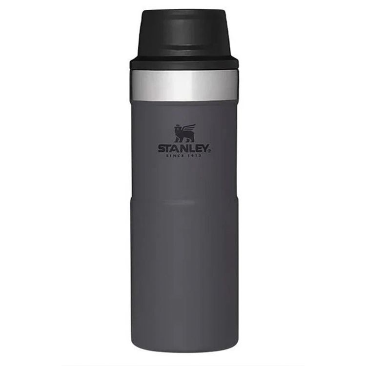 كوب سفر ستانلي كلاسيك تريجر أكشن سعة 355 مل، آمن للاستخدام في غسالة الأطباق، مزود بجدارين مع عزل مفرغ من الهواء - فحمي