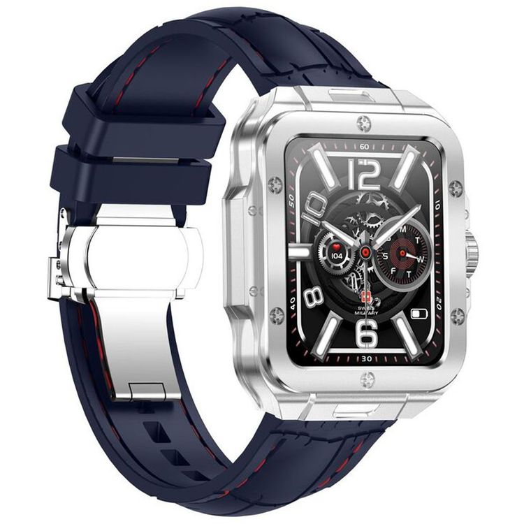 ساعة سويس ميليتاري ألبس 2، شاشة عالية الدقة مقاس 1.85 مم، ذاكرة مدمجة 4 جيجابايت، اكتشاف التمرين، مراقبة ضغط الدم ومستوى الأكسجين، إجراء واستقبال المكالمات - إطار فضي وحزام سيليكون أزرق