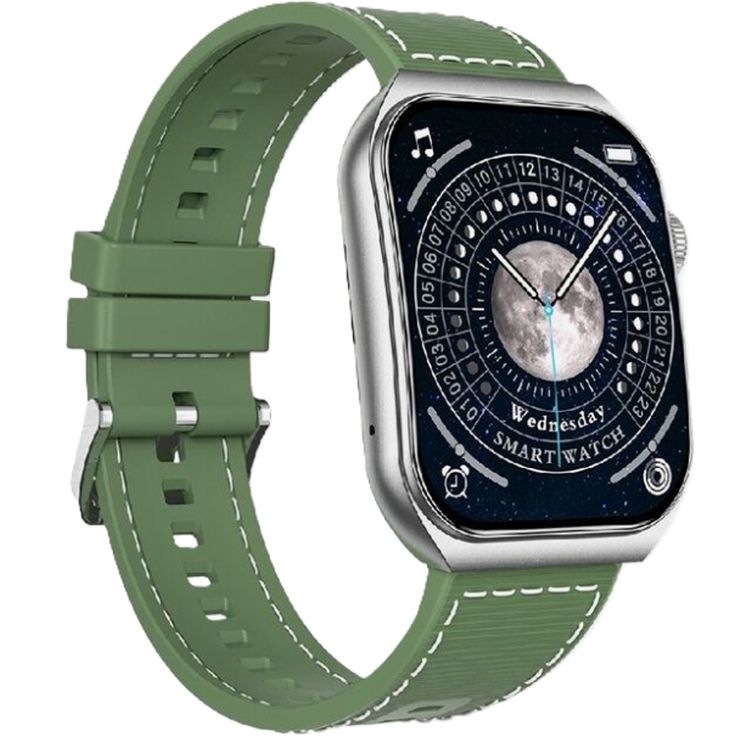 ساعة سويس ميليتاري ألبس 3 الذكية، شاشة AMOLED منحنية زجاجية مقاس 1.96 بوصة، عمر بطارية أسبوع، شحن لاسلكي، مقاومة للماء، استقبال وإجراء مكالمات - حزام سيليكون أخضر