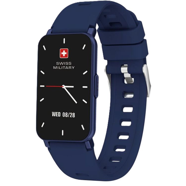 ساعة سويس ميليتاري راين الذكية بشاشة IPS مقاس 1.45 بوصة، عمر البطارية 10 أيام، تدعم اللغة الإنجليزية والعربية، تعمل بنظامي التشغيل iOS 11 وAndroid 5، مقاومة للماء - أزرق