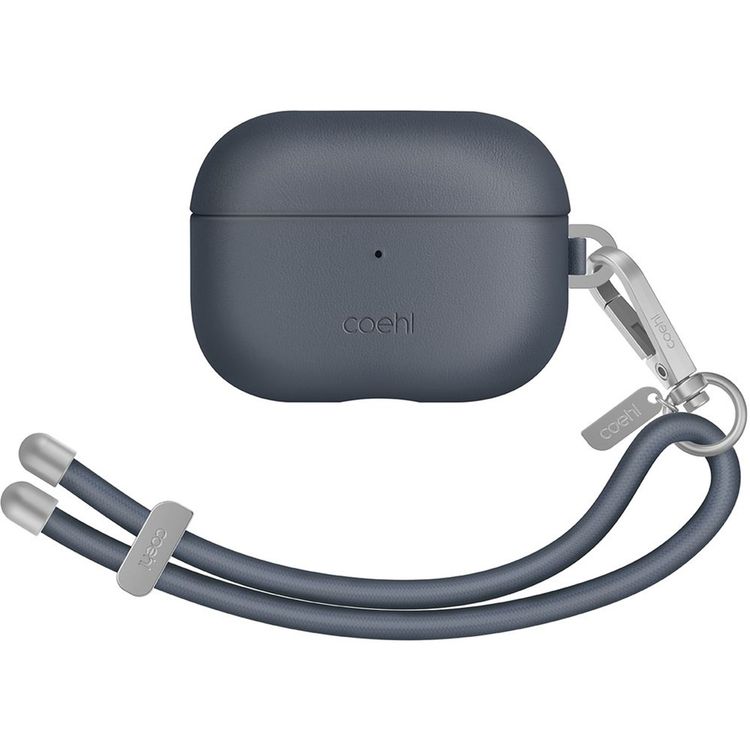 كفر UNIQ Coehl Haven Airpods Pro الجيل الثاني (2022)، شحن سلكي ولاسلكي، حزام يد قابل للفصل، جلد صناعي - أزرق ياقوتي