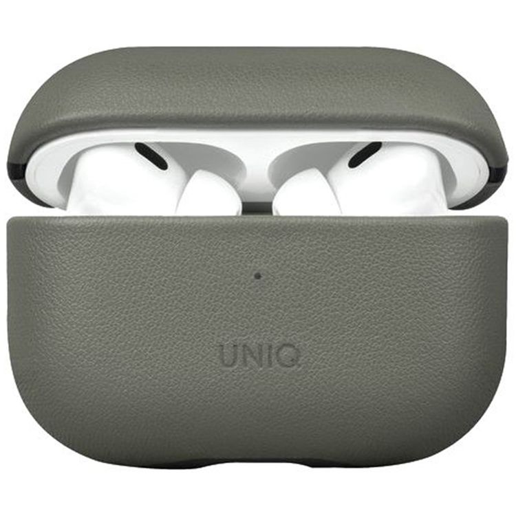 محافظ Uniq Terra من الجلد الأصلي لأجهزة AirPods Pro (الجيل الأول) وAirPods Pro (الجيل الثاني)، وبطانة داخلية من الألياف الدقيقة، وحزام معصم مجدول، وشحن سلكي ولاسلكي