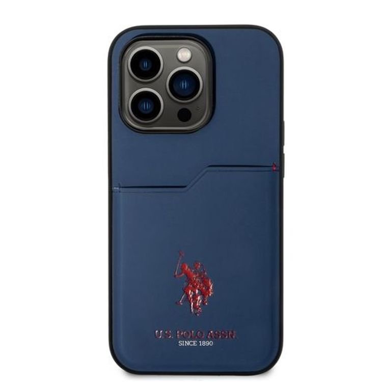 جراب صلب بفتحة بطاقة يو إس بولو لهاتف iPhone 14 Pro - البحريه الزرقاء
