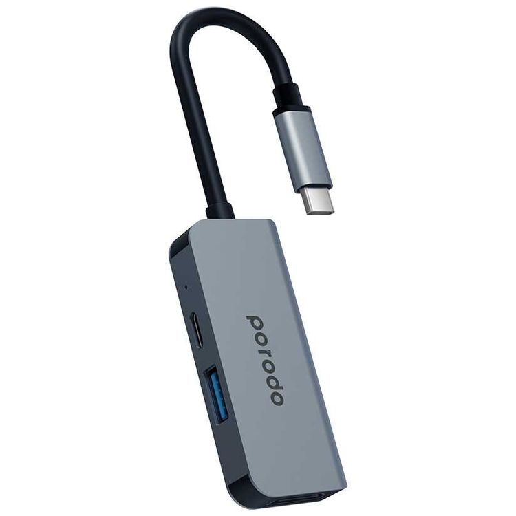 محور Porodo 3 في 1 من الألومنيوم USB-C PD 87W - رمادي