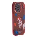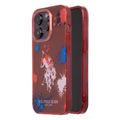 USPA PC/TPU Case with Splatter Pattern & Horse Logo iPhone 14 Pro Compatibility - Red
