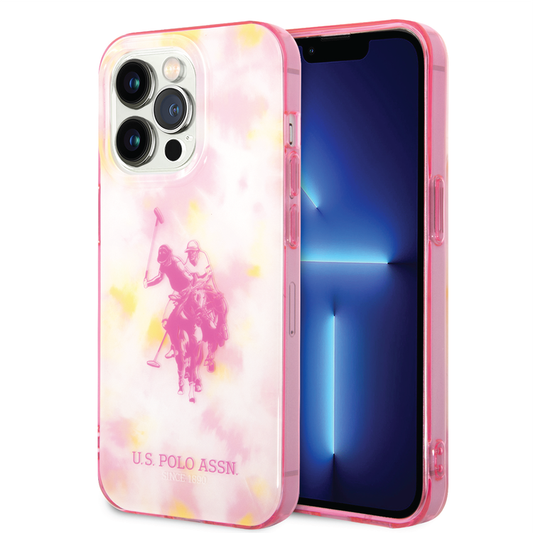 USPA PC/TPU Case with Tie&Dye Design & Horse Logo iPhone 14 Pro Compatibility - Pink