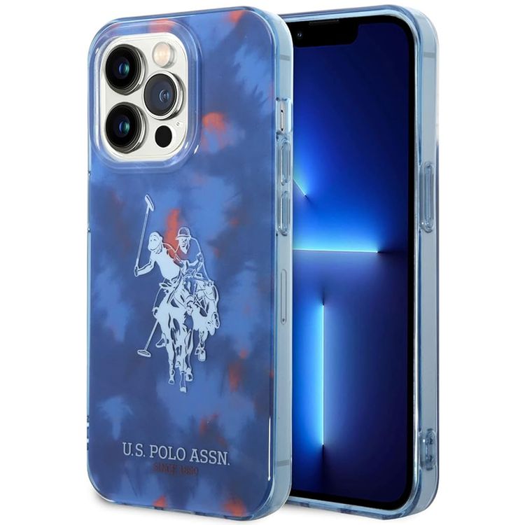 USPA PC/TPU Case with Tie&Dye Design & Horse Logo iPhone 14 Pro Max Compatibility - Blue