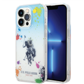 كفر USPA PC/TPU متدرج بتصميم رسمات متناثرة وشعار حصان متناسق مع iPhone 14 Pro - أزرق