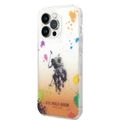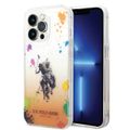 كفر USPA PC/TPU متدرج بتصميم رسمات متناثرة وشعار حصان متناسق مع iPhone 14 Pro Max - برتقالي