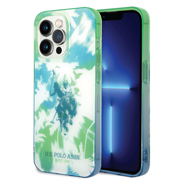 كفر USPA PC/TPU IML مع تصميم النخيل المصبوغة وشعار الحصان لهاتف iPhone 14 Pro - أخضر