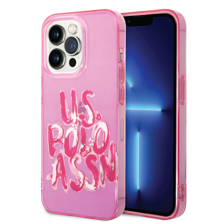 كفر شفاف من مادة البولي كربونات/البولي يوريثين الحراري من USPA مع شعار جرافيتي لهاتف iPhone 14 Pro-وردي