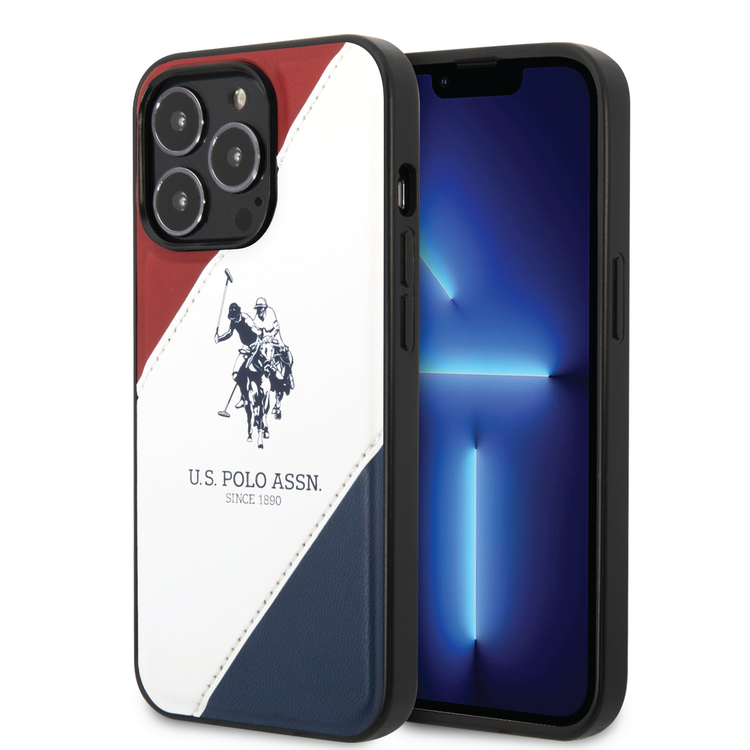 USPA حافظة جلدية PU مع خط مزدوج منقوش وشعار الحصان - أحمر / أبيض / البحرية