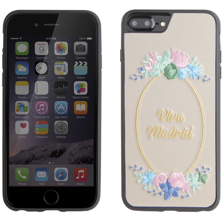 Viva Madrid Fleur Back Case Embroidered Floral Design Compatible for iPhone 7 Plus - Easy Access to All Ports - Scratch Resistance - Drop-shock Protection Back Cover - Beige