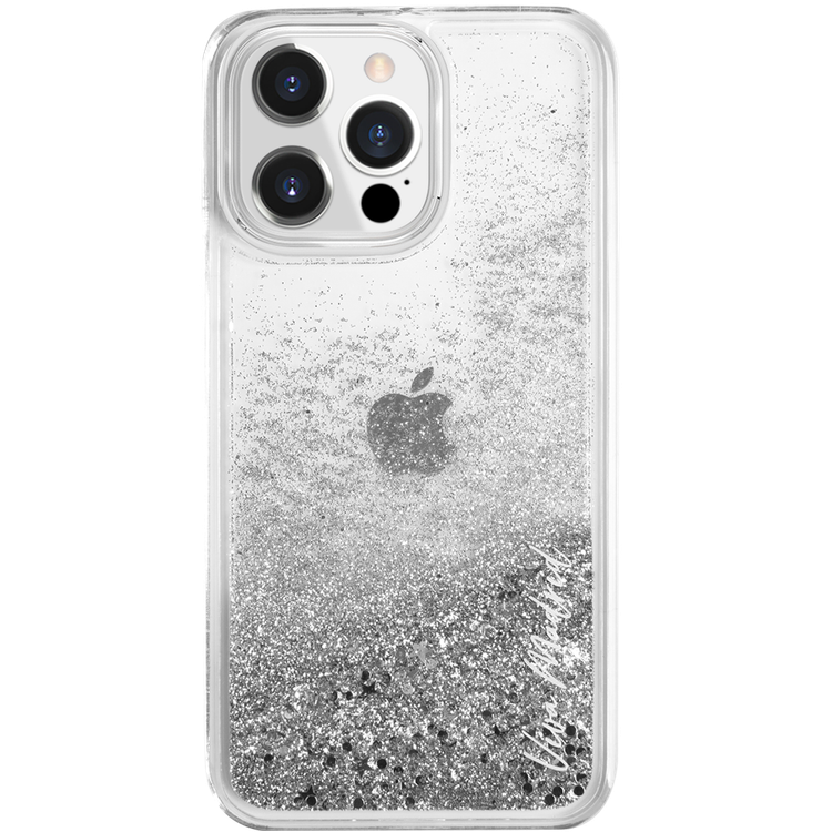 حافظة Viva Madrid Glamour Hybrid TPU/PC مع كريستالات لامعة وخرز متوافقة مع هاتف iPhone 13 (6.1 بوصة) - آيفون 13 برو - شفاف / فضي