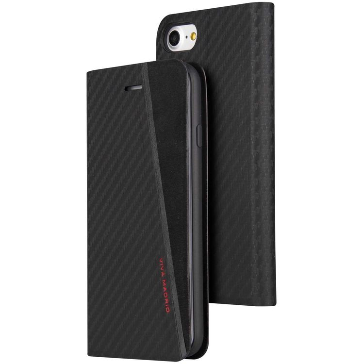 Viva Madrid Grafito Racha Folio Case w/ Card Slot & Electro-magnetic Shield Compatible for iPhone 7 - Anti-Scratch - Easy Access to All Ports - Drop Protection Back Cover - Black