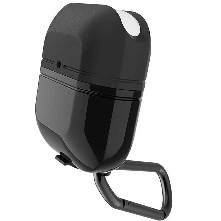 جراب X-Doria Defense Journey لسماعات AirPods 1 و2 مع حلقة تثبيت وحلقة قابلة للفصل، مصنوع من مادة TPU والسيليكون، مقاوم للماء والغبار، حماية كاملة بزاوية 360 درجة، مضاد للخدش - أسود