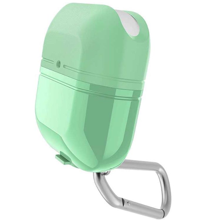 جراب X-Doria Defense Journey لسماعات AirPods 1 و2 مع حلقة تثبيت وحلقة قابلة للفصل، مصنوع من مادة TPU والسيليكون، مقاوم للماء والغبار، حماية كاملة بزاوية 360 درجة، مضاد للخدش - نعناعي